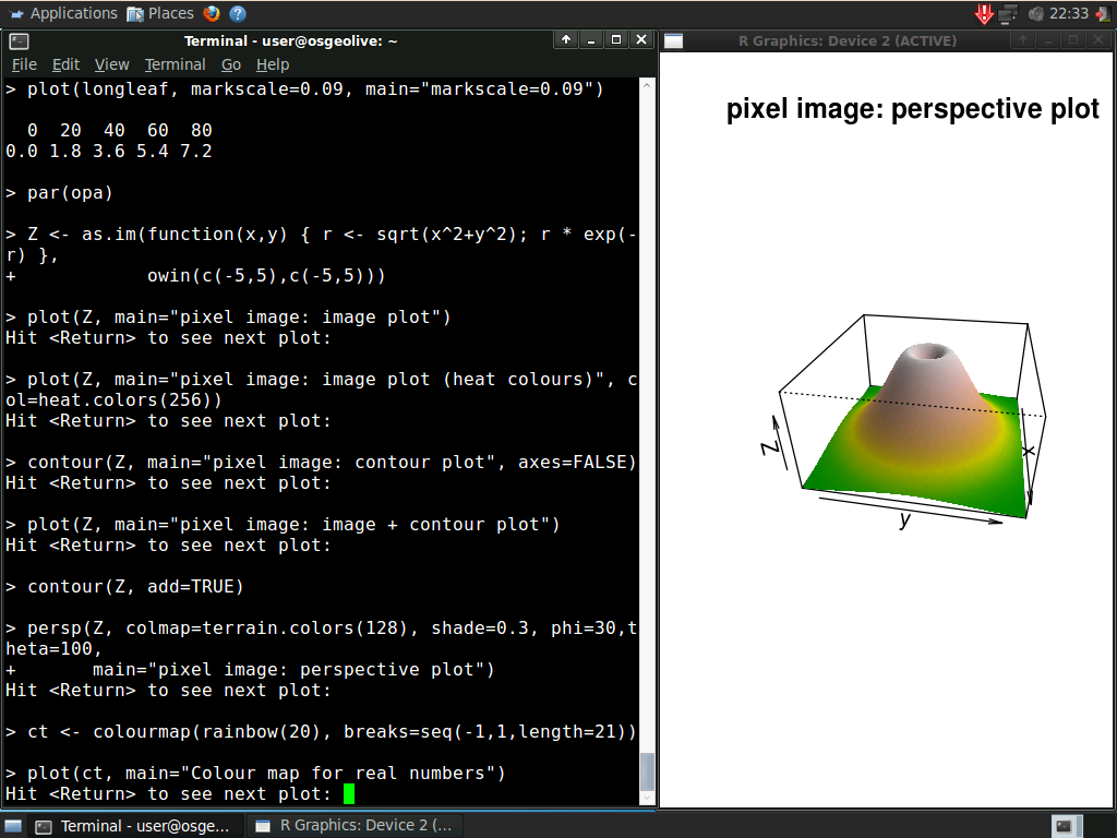 R is a powerful, widely used software environment for statistical computing and graphics which excels at analyzing and processing geographic data sets. Geospatial analysis capabilities within R are available in R packages (modules that extend the capabilities of R) that provide access to a large number of traditional and state of the art algorithms, often before they are available in other open source or proprietary software. R and it’s packages are able to process point, line, polygon and grid data. Users can accomplish a broad array of tasks such as: image classification, statistical analysis to infer spatial relationships and patterns of features, and others listed in the core features below. The functions available via R compliment and advance capabilities found in GIS and image processing software.